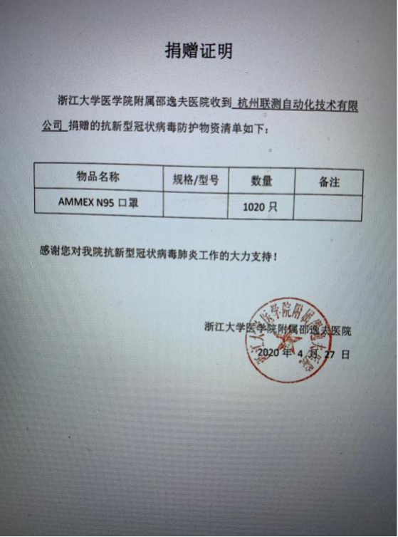 自新冠肺炎疫情爆發(fā)以來,杭州聯(lián)測自動化有限公司累積向邵逸夫醫(yī)院捐贈1020只N95醫(yī)用口罩,為當(dāng)?shù)氐目挂咭痪€的醫(yī)護人員提供一份保障。